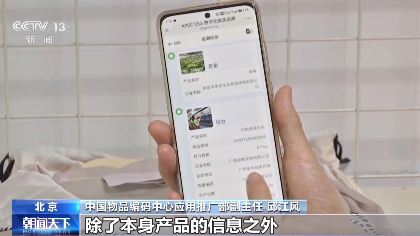 中国物品编码中心总工程师 李建辉:通过扫标准二维码,可以获得产品的原产国,以及进出口的报关单号等全链路的溯源信息,也可以展示多种的语言标签,有利于增强企业的竞争力,还可以让消费者获得更多产品信息。也让全球的消费者对中国产品信得过,更放心。