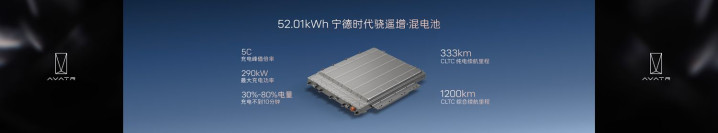 动力方面,新车提供1.5T增程器和电机组成的增程混动系统,拥有后驱、四驱两种方式可选,其中电池部分提供宁德时代骁遥超级增混电池,容量为52kWh,纯电续航为333km,综合续航达到1200km水平,并提供5C超充。