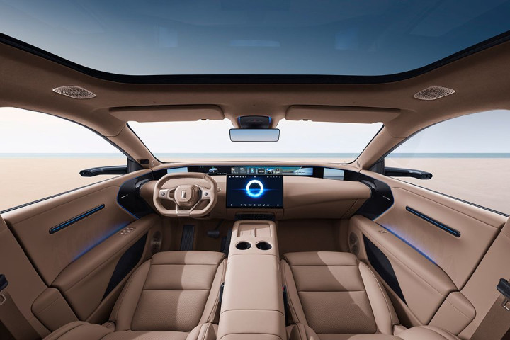 内饰方面,新车设计基本维持家族式设计风格,前排有超长的窄屏,官方将之命名为“Halo屏”,和华为合作打造,中控屏则是内置了鸿蒙座舱5系统,支持华为车机生态互联等。